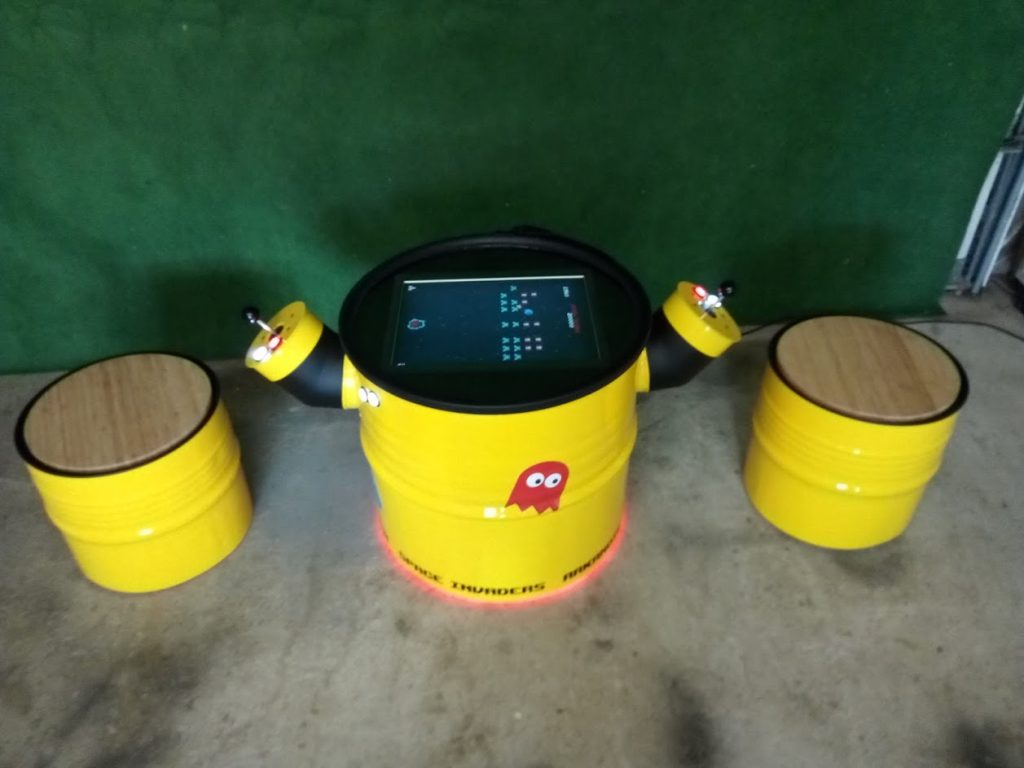 Le « TONO Pacman » & le « TONO en Fût de Chêne » sont tous deux dotés d’un écran 32″ à la verticale, de 2 manettes, et un monnayeur en option. Seul le design les différencies.