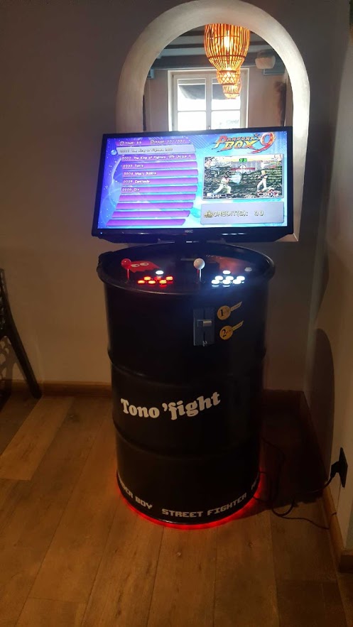 Le « TONO Street Fighter » est doté d’un écran de 32″ à l’horizontale, de 2 manettes, de 8 positions, de 12 boutons « Led » et d’un monnayeur en option.